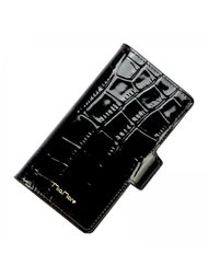 Czarny, skórzany portfel damski w orientacji pionowej zamykany na zatrzask - Rovicky