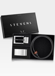 Pasek Skórzany Dwustronny STEVENS William Zestaw Prezentowy 4w1 Obrotowy Czarny Brązowy