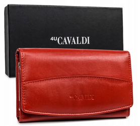 Portfel Damski Skórzany STEVENS Rozbudowany z biglem Czerwony Z03-099 RFID
