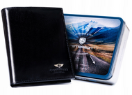 Czarny, pionowy portfel męski ze skóry naturalnej — Peterson