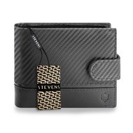 Portfel Męski Skórzany STEVENS Mocna Powłoka Carbon Poziomy Zapinany Czarny RFID