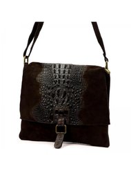 Damska Torebka Skórzana Luka 26-076 CROCO ciemny brąz