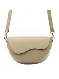 Torebka Damska Skórzana Luka Dollaro Listonoszka Ciemny Beż Złote Okucia