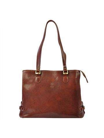 Torebka Damska Skórzana Florence 5512 Listonoszka Ciemnobrązowa Ze Złotymi Okuciami
