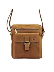 ( ilość produktów: 3 )Saszetka Skórzana Andreas Brązowa Crossbody Nubuk z Złotymi Okuciami H1546