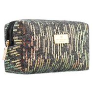 Czarna kosmetyczka z poliestru ozdobiona cekinami, zamykana suwakiem - Peterson