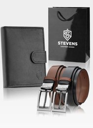 ( ilość produktów: 162 )Zestaw Portfel Skórzany + Pasek Skórzany Dwustronny STEVENS Obrotowy Czarny/Brązowy