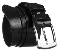 Czarny, skórzany pasek męski z tradycyjną klamrą - Peterson