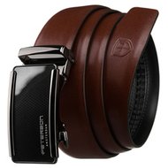 Klasyczny pasek męski w brązowym kolorze z automatyczną, srebrną klamrą - Peterson