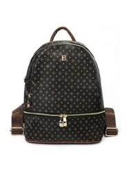 Plecak Damski BRICIOLE 4131 Eko-Skóra Czarno-Brązowy z Złotymi Okuciami