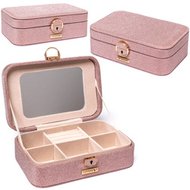 Różowa szkatułka na biżuterię z wbudowanym lusterkiem - Peterson
