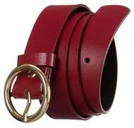 Pasek damski ze skóry ekologicznej w burgundowym kolorze ze srebrną klamrą - Peterson