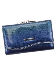 Portfel Damski Skórzany Jennifer Jones 5280-2 Niebieski Poziomy Duży Lakierowany