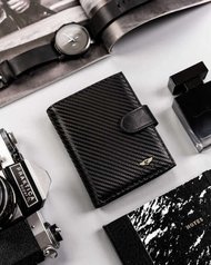 Skórzany portfel męski z zapięciem — Peterson - Czarny