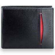 Portfel Męski Skórzany STEVENS Ochrona RFID Czarny + Czerwony Młodzieżowy