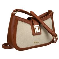 ( ilość produktów: 590 )Beżowo-brązowa listonoszka damska ze skóry naturalnej i płótna poliamidowego - Peterson