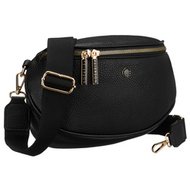 Skórzana, czarna listonoszka męska na złoty suwak w zestawie z saszetką - Peterson