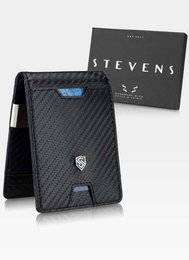 Portfel Męski Skórzany STEVENS Drobne na Klips slim nowoczesny z RFID Carbon na Karty na gotówkę prezent