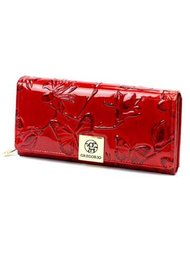 Portfel Damski Gregorio Elegancja Skóra Naturalna Czerwony Poziomy Duży RFID Secure