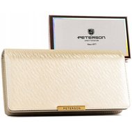 Portfel damski ze skóry ekologicznej w kolorze ecru zamykany na zatrzask i suwak - Peterson