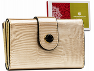 Modny portfel damski złoty z lakierowanej skóry naturalnej - Peterson