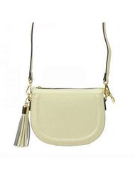 Torebka Skórzana Patrizia 417-004 Kremowa Listonoszka Crossbody Ze Skóry Naturalnej Z Złotymi Okuciami