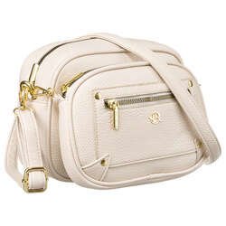 Damska listonoszka ze skóry ekologicznej w beżowym kolorze z suwakami na froncie - Rovicky