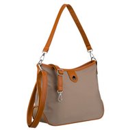 Miejska torebka damska z poliestru i skóry ekologicznej w beżowym kolorze, jednokomorowa i zamykana suwakiem - Peterson