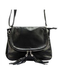 Torebka Skórzana Luka 20-023 D Czarna Listonoszka ze Skóry Naturalnej z Brelokiem