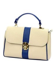 Torebka Skórzana Luka Kuferek Beżowo-Niebieski ze Skóry Naturalnej Damska z Dodatkowym Paskiem