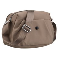Miejska torebka damska z poliestru i skóry ekologicznej w beżowym kolorze, jednokomorowa i zamykana suwakiem - Peterson