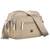 Beżowa listonoszka damska z poliestru i skóry ekologicznej wyposażona w kieszonkę zewnętrzną - Peterson