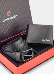 Elegancki zestaw prezentowy portfel + pasek marki w pudełku Pierre Cardin 120