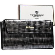 Poziomy, czerwony portfel damski ze skóry ekologicznej z tłoczeniem na wzór skóry krokodyla - Peterson