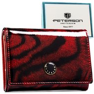 Czerwony, lakierowany portfel damski wykonany ze skóry naturalnej i ekologicznej pokryty zwierzęcym wzorem - Peterson