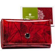 Elegancki skórzany portfel damski czerwony w motyle - Peterson