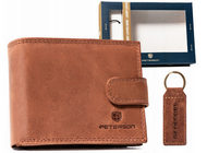 Zestaw prezentowy mały skórzany portfel męski i brelok Peterson