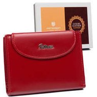 Czerwony portfel damski wykonany ze skóry naturalnej, zamykany na zatrzask - Peterson