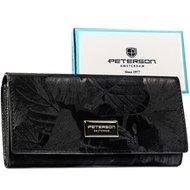Czarny portfel damski ze skóry ekologicznej zamykany na zatrzask i suwak - Peterson