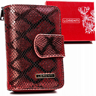 Mały portfel damski na zatrzask i bigiel z błyszczącej skóry naturalnej Lorenti