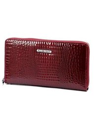 Lakierowany, pionowy skórzany portfel damski w czerwonym kolorze - Peterson