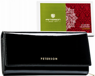 Lakierowany portfel damski czarny na suwak z RFID - Peterson
