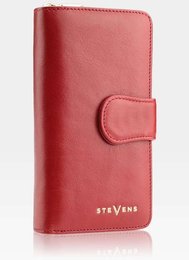 Portfel Damski Skórzany STEVENS Rozbudowany z biglem Czerwony Z02/RB-099 RFID