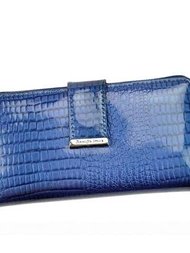 Portfel Damski Skórzany Jennifer Jones 5280-2 Niebieski Poziomy Duży Lakierowany