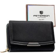 Beżowy portfel damski ze skóry ekologicznej zamykany na zatrzask i suwak - Peterson