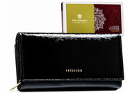 Duży, skórzany portfel damski na zamek i zatrzask — Peterson