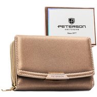 Brązowy portfel damski ze skóry ekologicznej zamykany na zatrzask i suwak - Peterson