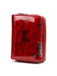 Czerwony lakierowany portfel damski w motyle na karty - Peterson