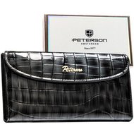 Brązowy portfel damski ze skóry ekologicznej zamykany na zatrzask i suwak - Peterson