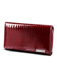 Lakierowany, pionowy skórzany portfel damski w czerwonym kolorze - Peterson
